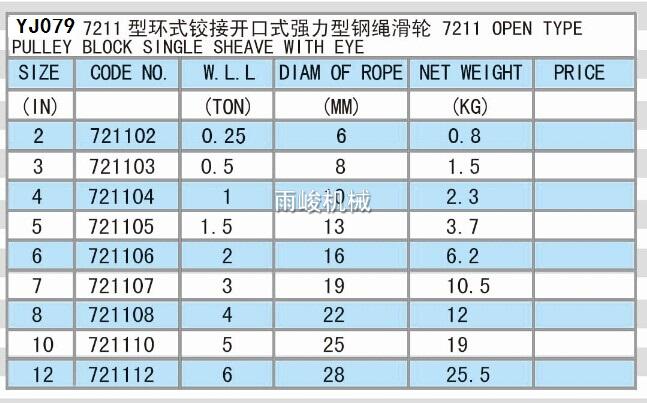 YJ079 環式鉸接開口式強力型鋼繩滑輪