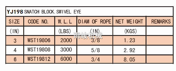 • 產品描述:該款滑輪有很多款式,有平板旋轉環的,旋轉鉤的,固定環的,也有平板平座可以固定的,尺寸小,靈活,從2”到6寸,拉力從1000 LBS到6000 LBS,可以適用于很多小噸位的起重作業工作。于澳洲和美洲的牧場上,有廣泛應用。