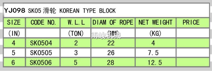 • 產品描述:該產品類似于長鏈環滑輪,尺寸有4寸2T,5寸3T,6寸5T這三個尺寸,體積小,承重大,用于起重方面。