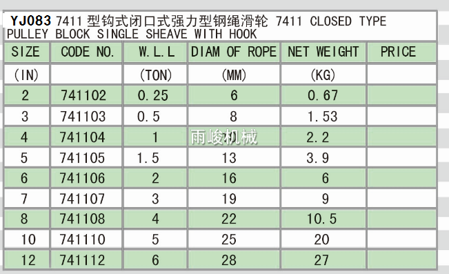 • YJ083 7411型鉤式閉口式強力型鋼繩滑輪