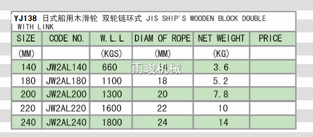 • YJ138 日式船用木滑輪 雙輪鏈環式