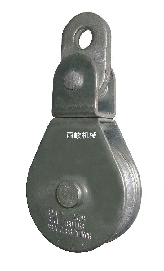 • 產品描述:該款滑輪有很多款式,有平板旋轉環的,旋轉鉤的,固定環的,也有平板平座可以固定的,尺寸小,靈活,從1-1/2”到5寸,拉力從525 LBS到1900 LBS,可以適用于很多小噸位的起重作業工作。于澳洲和美洲的牧場上,有廣泛應用
