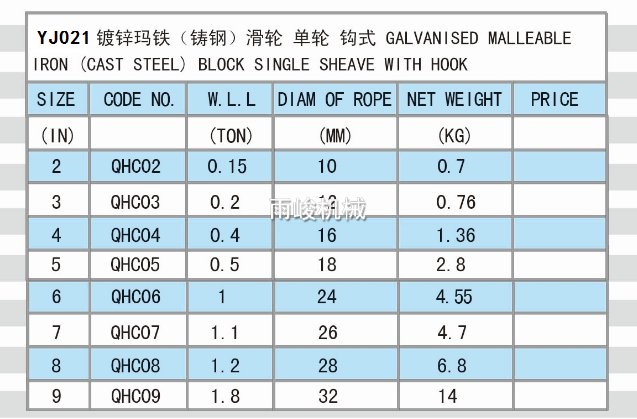 • YJ021 鍍鋅瑪鐵(鑄鋼)滑輪 單輪 鉤式