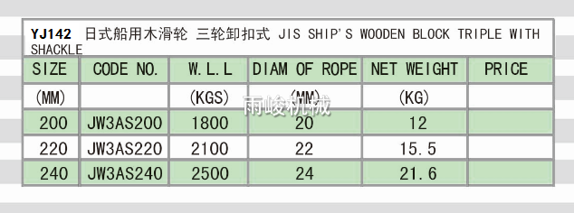 • YJ142 日式船用木滑輪 三輪卸扣式