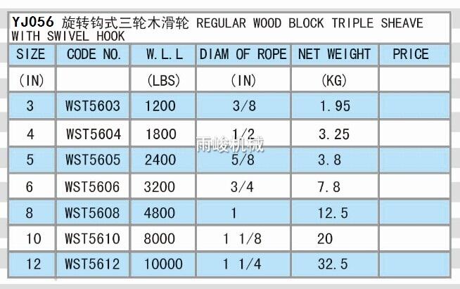 YJ056 旋轉鉤式三輪木滑輪