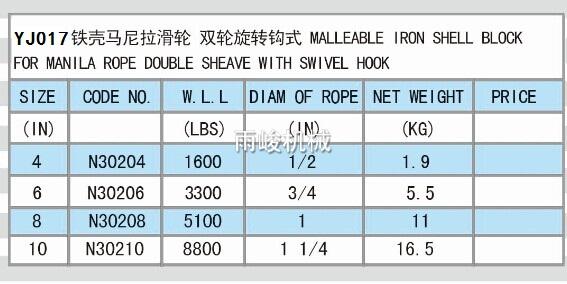 • 產品描述:船用熱鍍鋅鐵殼馬尼拉滑輪,適用于海洋捕魚作業用,使用馬尼拉繩,耐腐蝕。