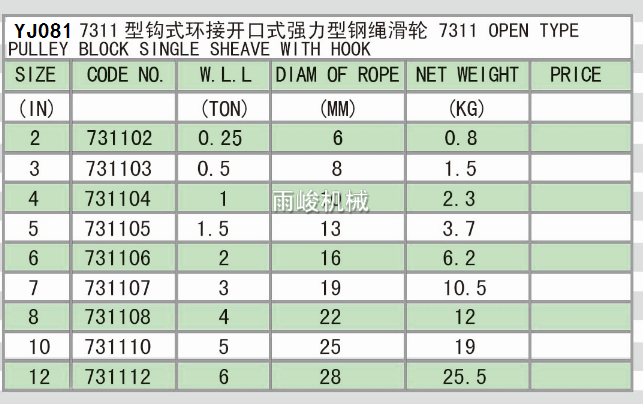 • YJ081 7311型鉤式環接開口式強力型鋼繩滑輪