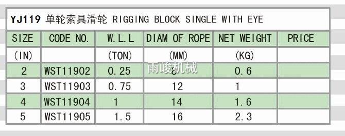 • YJ119 RIGGING BLOCK SINGLE WITH EYE