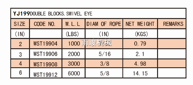 • YJ199 DOUBLE SHEAVE BLOCK SWIVEL EYE