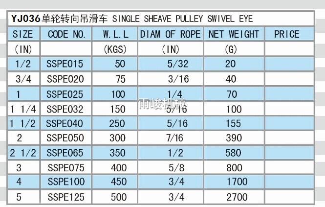 • YJ036 ZINC SINGLE SHEAVE PULLEY SWIVEL EYE