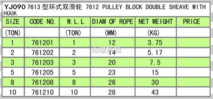 • YJ090 7613 PULLEY BLOCK DOUBLE SHEAVE WITH HOOK