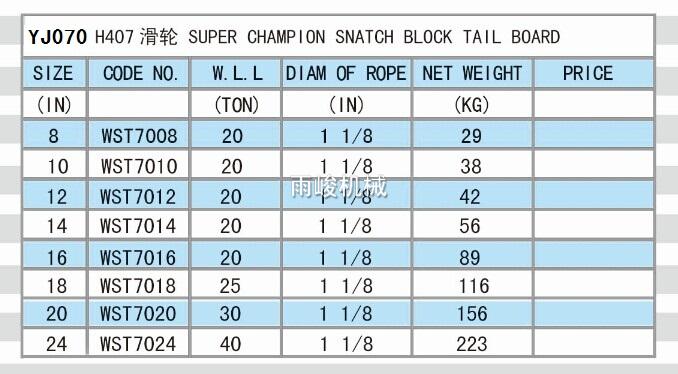 • YJ070 SUPER CHAMPION SNATCH BLOCK TAIL BOARD