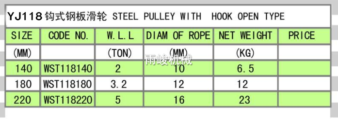 • YJ118 STEEL PULLEY WITH HOOK OPEN TYPE