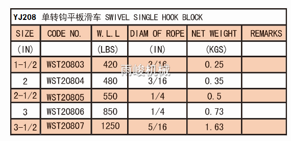 • YJ208 SWIVEL SINGLE HOOK BLOCK