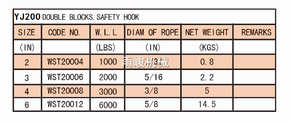 • YJ200 DOUBLE SHEAVE BLOCK WITH SWIVEL SAFETY HOOK
