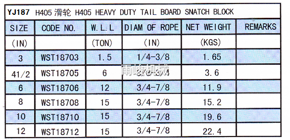 • Product description: YJ187 H405 HEAVY DUTY TAIL BOARD SNATCH BLOCK