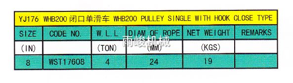 • YJ176 WHB200 PULLEY SINGLE WITH HOOK CLOSE TYPE